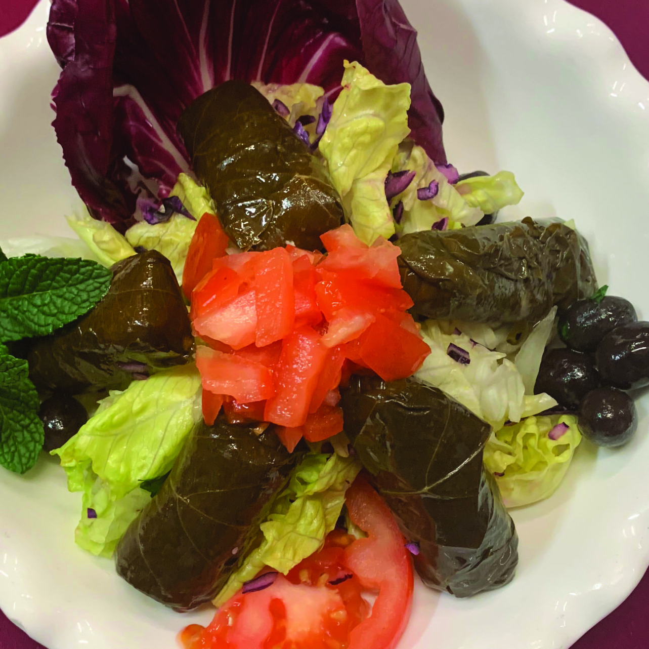 Mit Reis und Gewürzen gefüllte Weinblätter